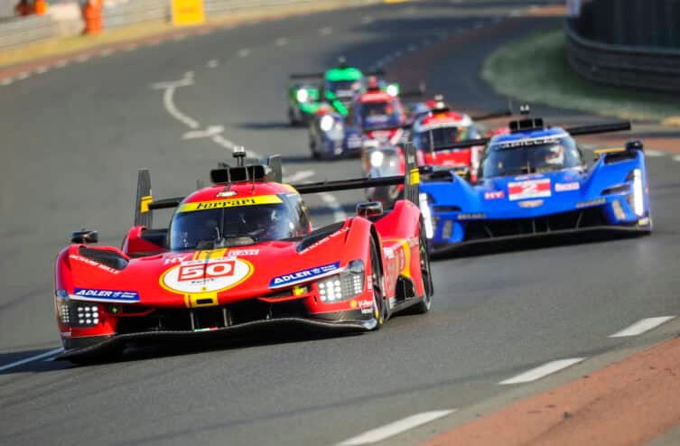 The race features three different classes of cars competing simultaneously: Hypercars, LMP2 prototypes, and LMGT3 touring cars. The winner is the car that covers the greatest distance within the 24 hour time limit.