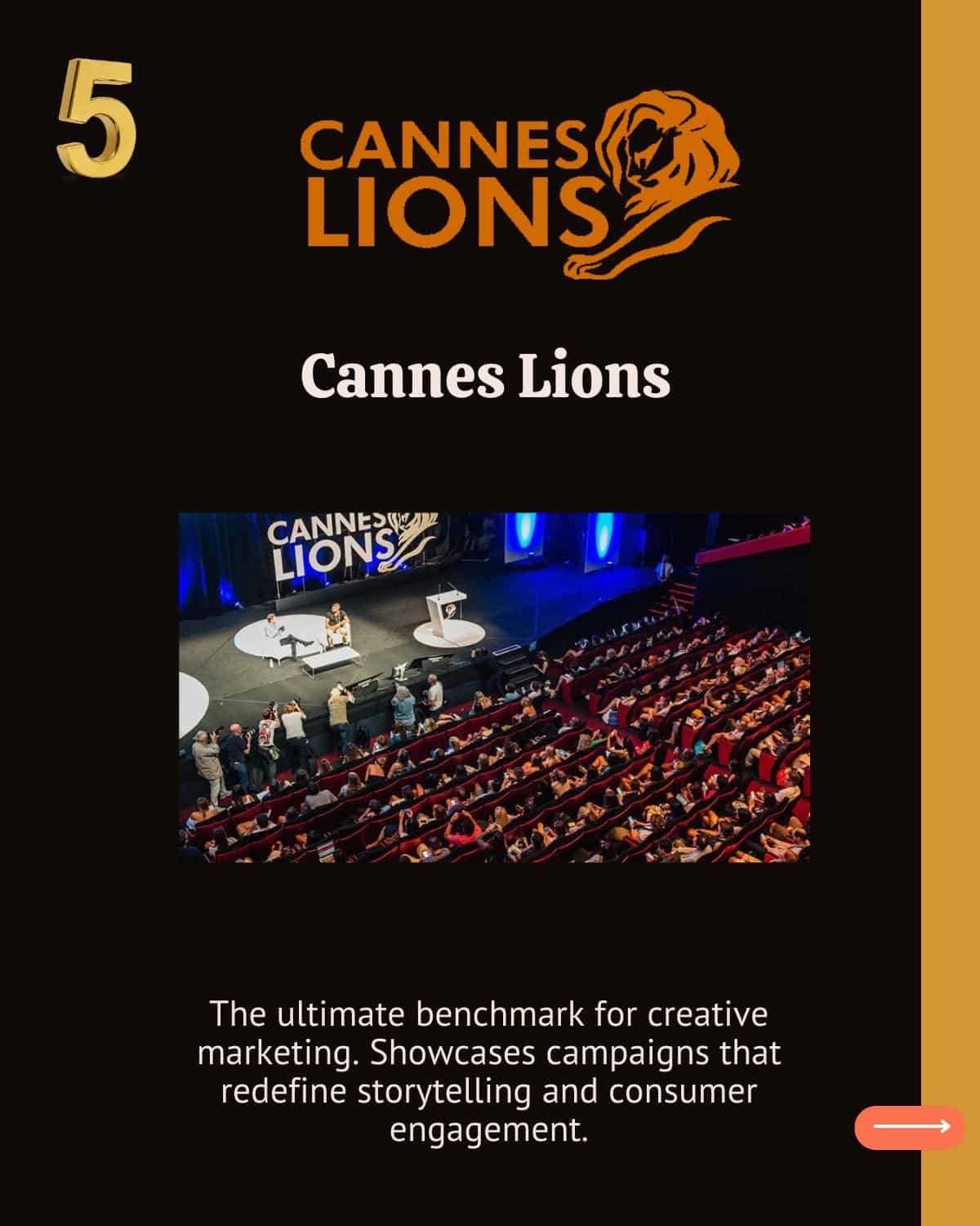 - The iconic Lion trophy presentations, with Grands Prix awarded daily, culminating in a final ceremony honoring categories like Film and Titanium.