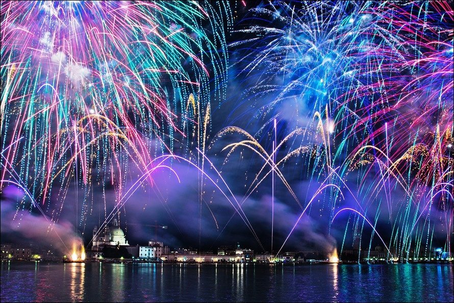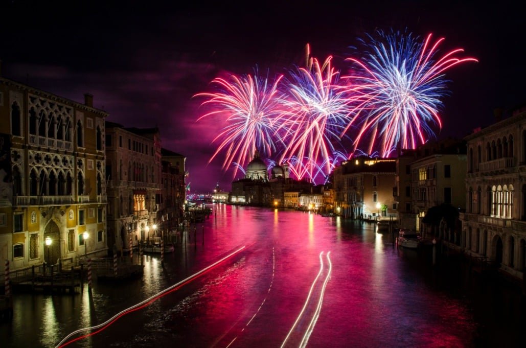 - St. Mark’s Basin Fireworks feature a massive midnight pyrotechnic show launched from the water in front of the Arsenale, best viewed from Riva degli Schiavoni.