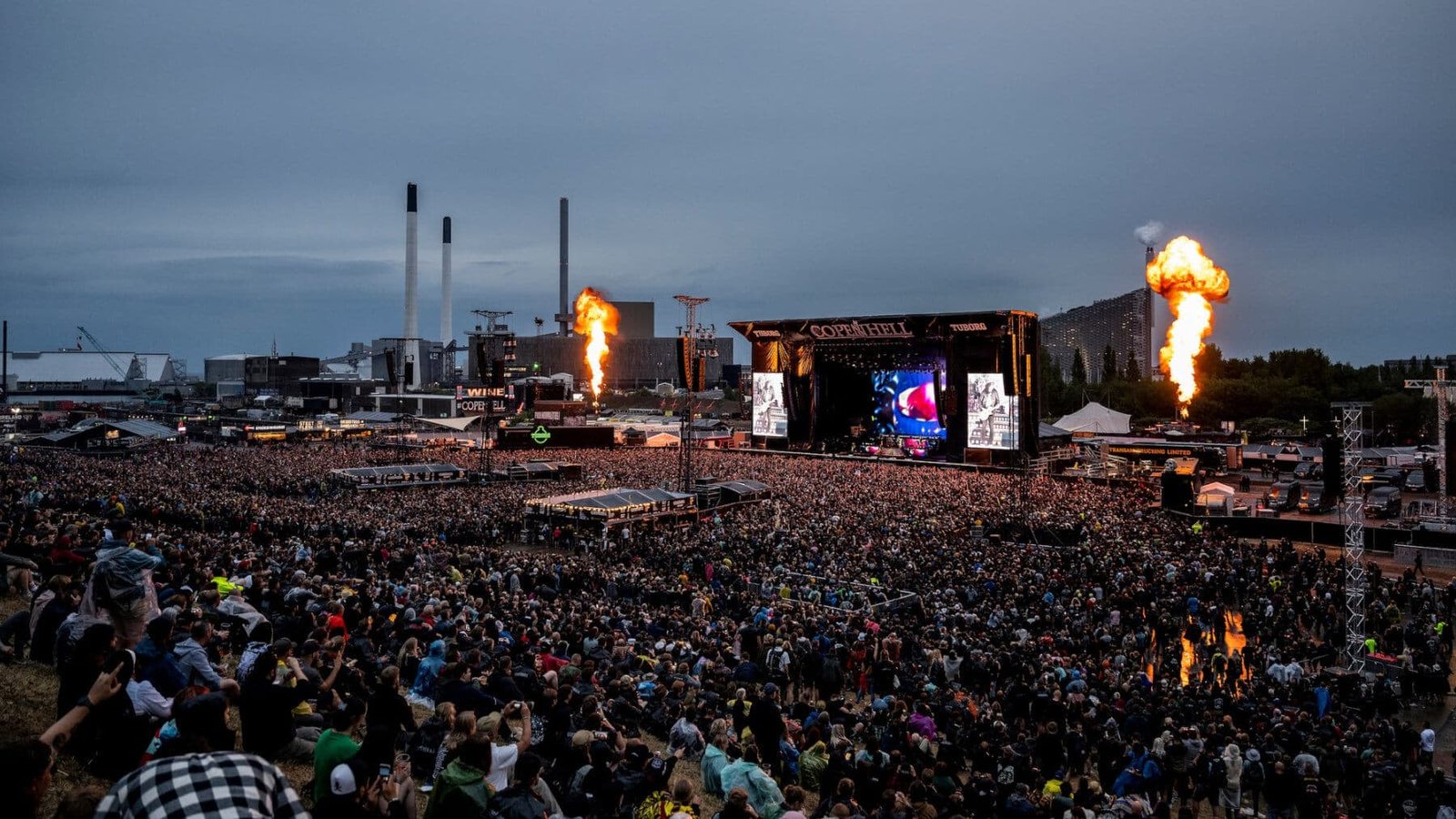 COPENHELL takes place regardless of the weather, and since the venue is an outdoor industrial site, you should come prepared for the Danish summer. Umbrellas are not allowed as they block the view for other guests, so it is best to pack a high-quality raincoat or purchase a poncho at the festival. The ground is mostly concrete and gravel, which stays relatively stable even when wet, but sturdy boots are highly recommended.