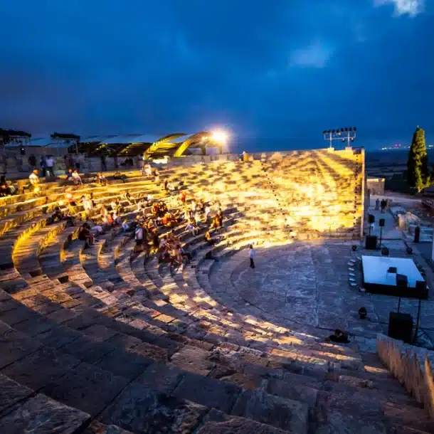 - Paphos Ancient Odeon’s entrance on Galatiani Street is near the port, with guided parking by festival staff.