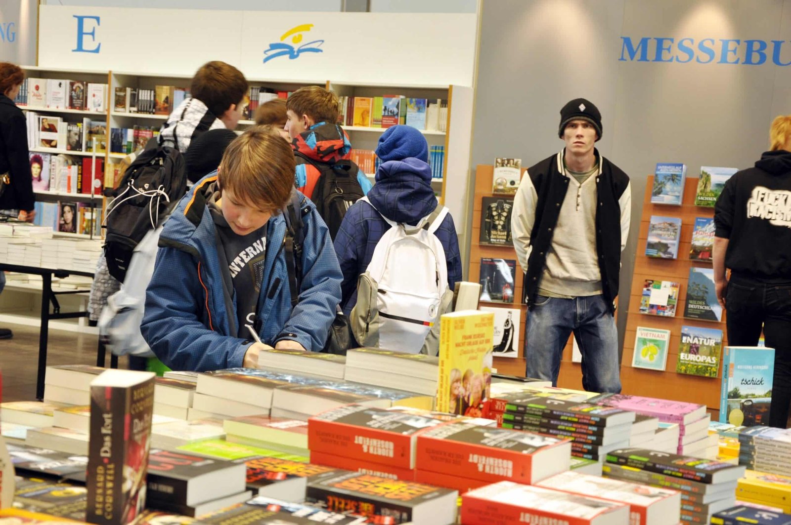 While many international trade fairs prohibit direct sales, visitors at the Leipzig Book Fair are permitted to purchase books on the final two days of the event. On the first two days, sales are generally restricted to specific bookstore stands located within the fairgrounds to allow for browsing.
