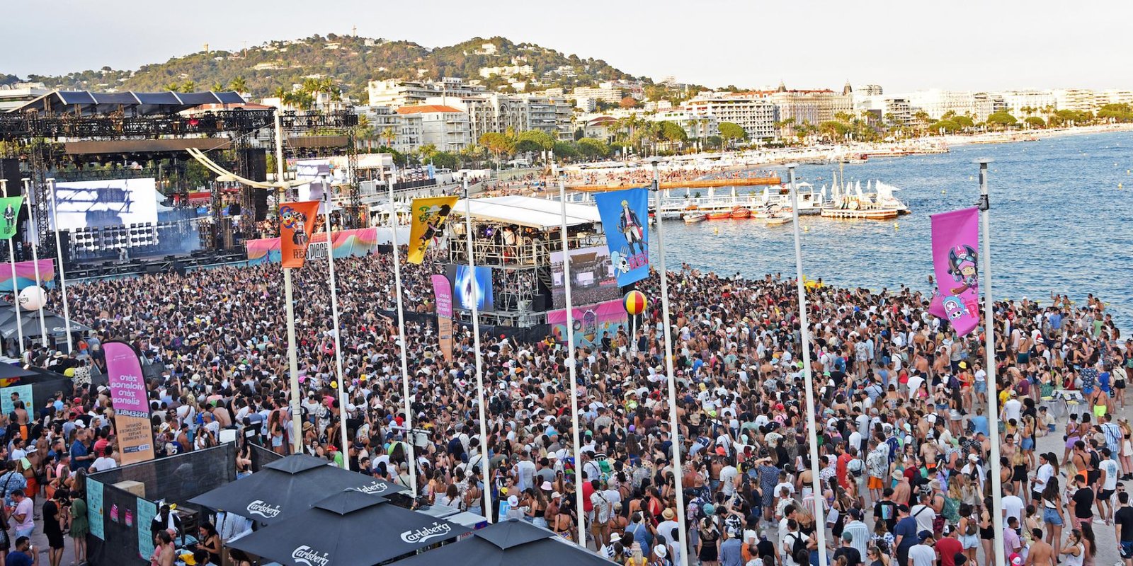 - Beachfront Main Stage: A massive 40,000 square meter dance floor situated directly on the sand of the Palais des Festivals beach.