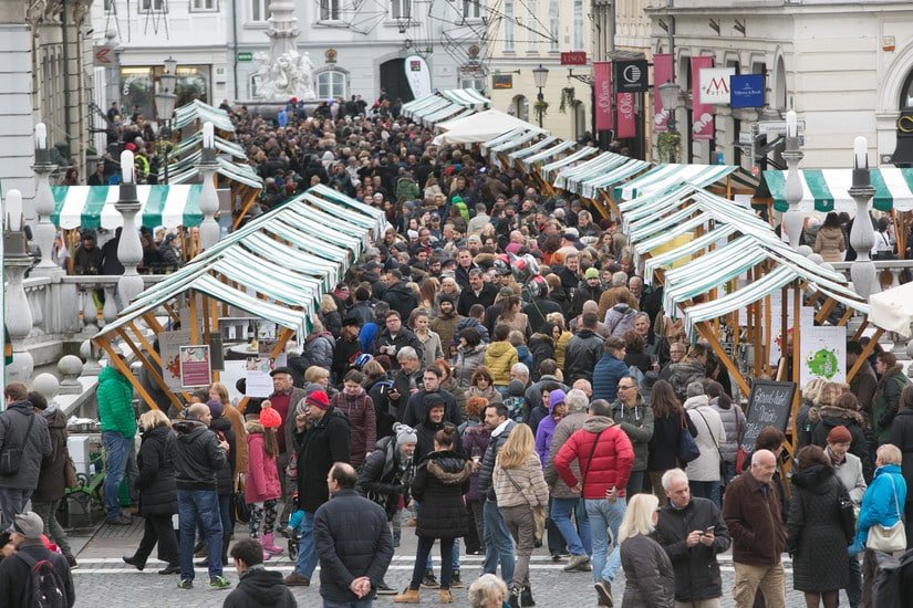 The November edition features a traditional St. Martin’s feast that highlights Slovenia’s rich autumn culinary heritage. Visitors can enjoy classic dishes like roast goose, braised red cabbage, and the traditional flatbread known as mlinci. Stalls also offer seasonal street foods such as roasted chestnuts, local cheeses, and various honey-based artisanal products. This combination of heavy, savory flavors is designed to perfectly complement the arrival of the season's young wines.