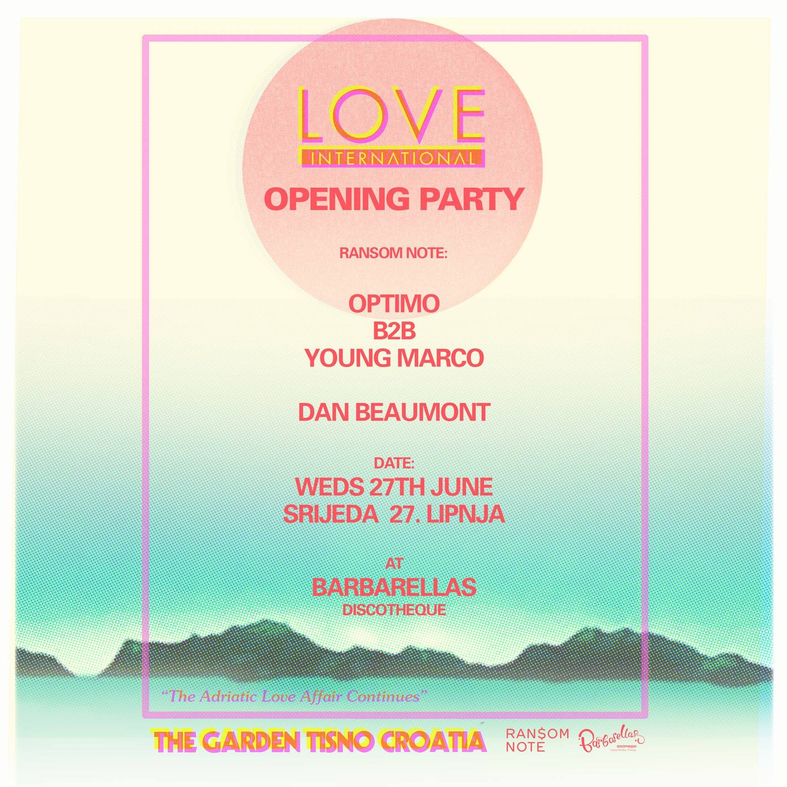 Love International Festival, founded in 2014 by the UK-based Team Love collective (creators of East Island festival) in collaboration with Croatia’s Garden Resort, was conceived as a hedonistic escape blending house, techno, disco, and electronic music with the Adriatic’s sun-drenched islands, starting with 5,000 attendees across Pag and Tisno venues and headliners like Dimitri from Paris and Artwork. By 2016, it consolidated at The Garden in Tisno—a former military base turned eco-retreat—for its intimate, beachfront vibe, growing to 10,000+ by 2019 and generating €2–3 million annually for Murter Island’s economy through tourism, local boat charters, and hospitality, while earning acclaim as “Europe’s most beautiful festival” from Mixmag for its sunset beach sets and sunset swims. Organized by Team Love, it emphasizes “love and unity” with a no-corporate ethos, fostering a community of ravers since its roots in London’s 2000s club scene.