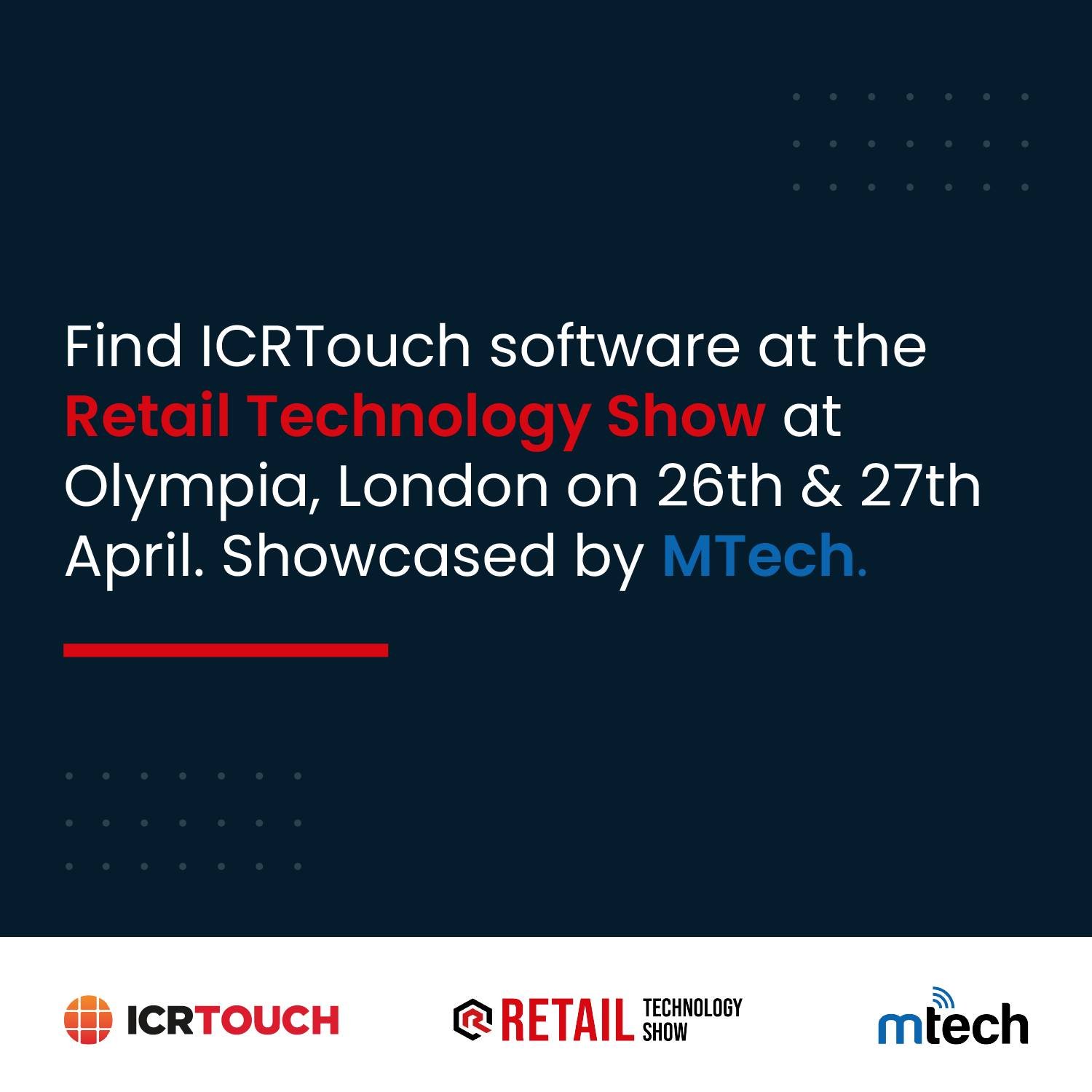 - Social Media: @RetailTechShow (Instagram, Twitter); Retail Technology Show (LinkedIn, Facebook).
