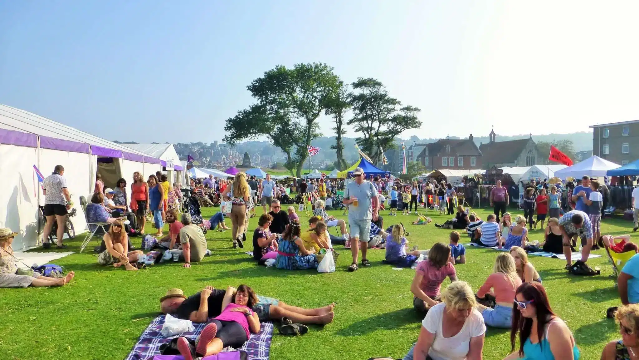 Sandpit Field serves as the main catering hub with a wide variety of stalls offering local Dorset produce and international cuisine. There is also a festival beer tent featuring local ales and ciders, plus numerous cafes and pubs within a short walk.