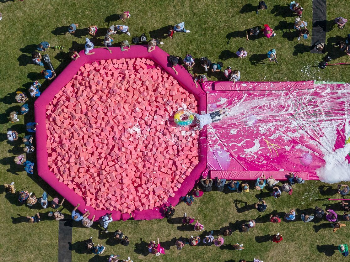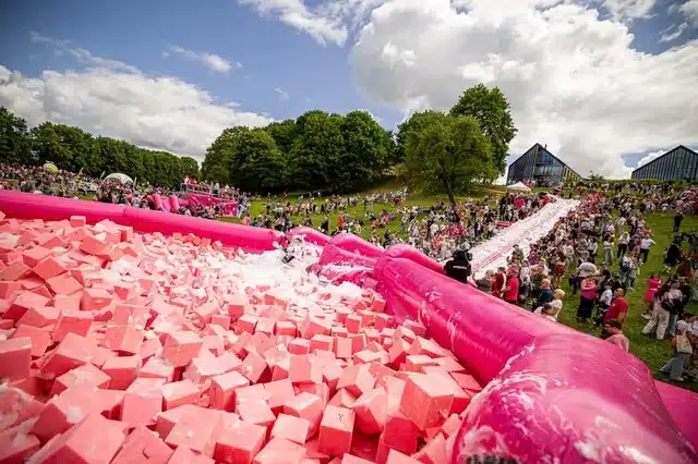 • The Great Pink Slide: A daring 50-meter slide down the Artillery Bastion Hill where participants hurl themselves toward a giant inflatable bowl of pink soup.
