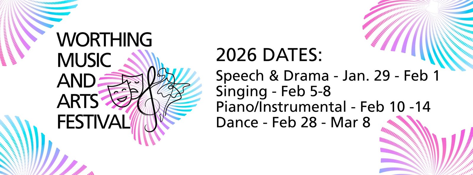 The Worthing Music and Arts Festival is divided into several sections, with the following dates announced for 2026: