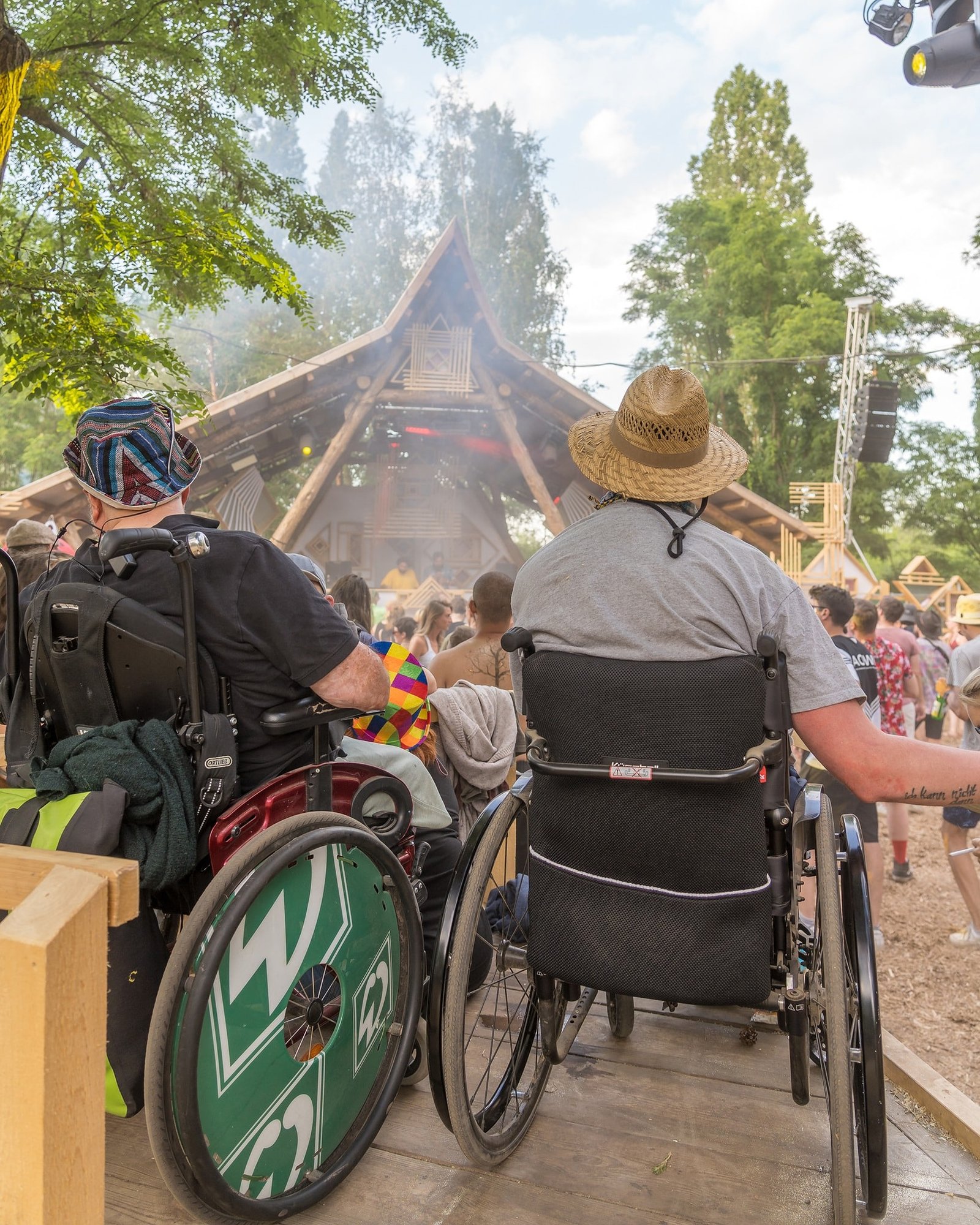 The organizers put significant effort into making the former airfield accessible by installing ramps and dedicated pathways over difficult terrain. There are also specific sanitary facilities designed for accessibility and a dedicated support team available to assist any guests with limited mobility.